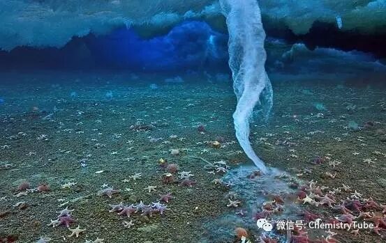 死亡冰柱形成的原理是海水上层温度很低,不断结冰,排挤出大量盐分,这些高盐海水密度大,而且温度比下层海水低很多,汇集起来下沉。