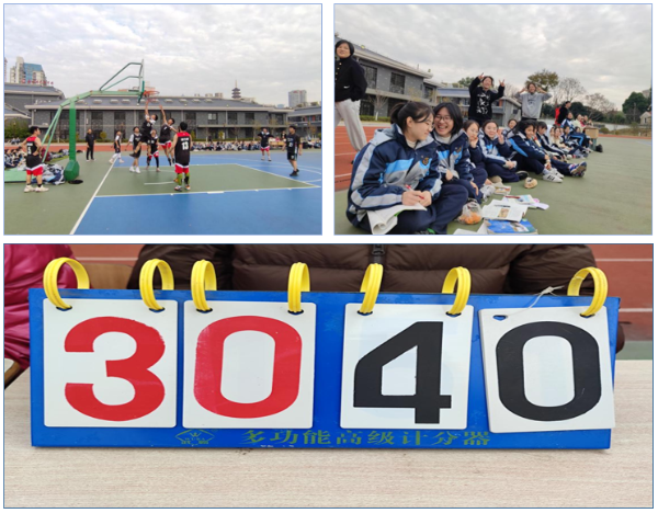 赛事正火热进行,双方比分激烈,最后高二同学以40:30的比分赢得了比赛。