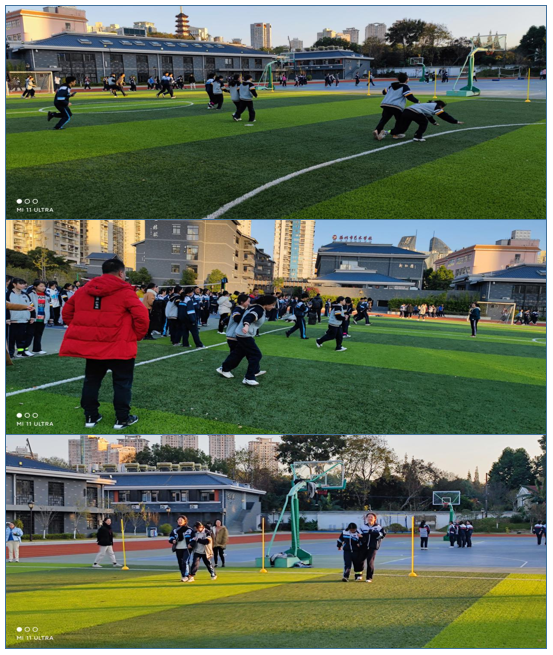 初一的四个班级在闲暇的时间里都非常努力的练习着,看着他们奋力奔跑的样子,看着他们斗志昂扬的气势,看他们团结一致的步伐,不经让人心潮澎湃起来,初一的少年们各个都在赛场上体现出了各班团队的默契之高。本次活动也让我们意识到团队的力量以及它的重要性,使得我们更加团结、更加默契,这个项目也是深受初一段稚嫩少年们的喜爱。