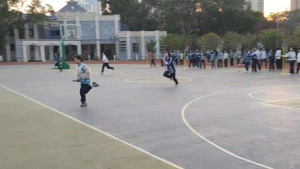 为全面贯彻落实学校体育工作计划要求,进一步丰富校园文化,活力校园生活,提高学生的身体素质和活动能力,展现我校学生健康、文明、积极向上的精神风貌,培养学生顽强拼搏、团结协作的精神风貌,营造“绿色、和谐、勤学、优质”的校园氛围,学校体育组于11月19日在北校区篮球场举行了初二段“篮球全场运球上篮”迎面接力比赛。