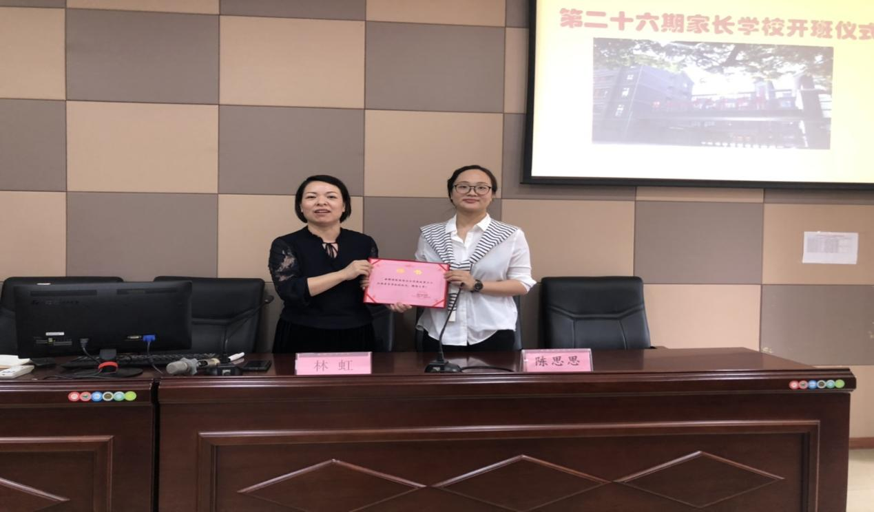 首先,德育副校长林虹老师宣读相关文件,宣布温州艺术学校第二十六期家长学校正式成立,并给家长学校的副校长----陈思思女士颁发了聘书。