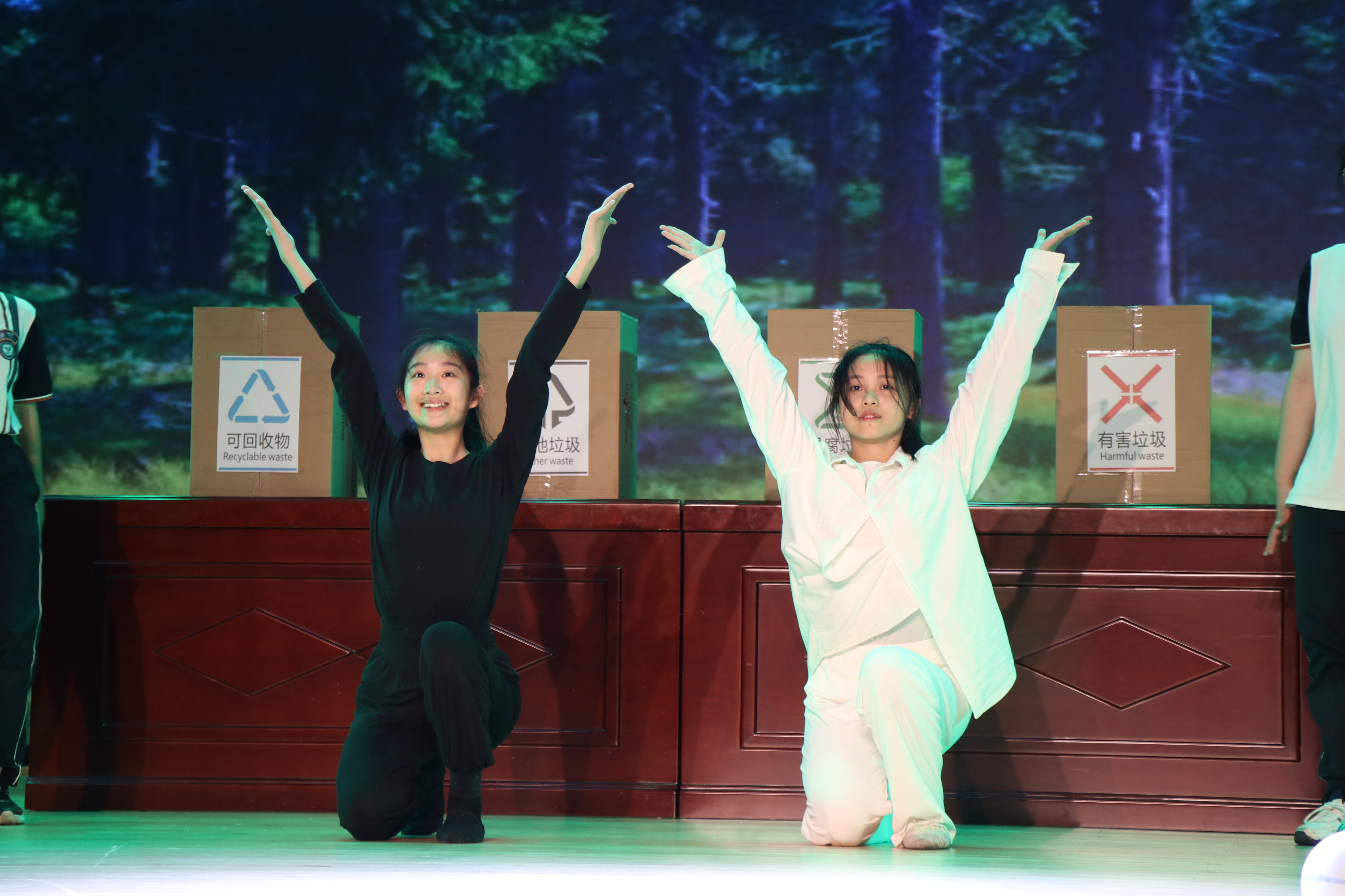 接下来狄春桐和姜乔弼同学带来了默剧《影》,让我们深切的感受与了解到了环境污染对于大自然的危害,也让大家认识到了环境保护应该融入日常生活。
