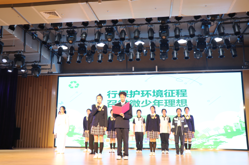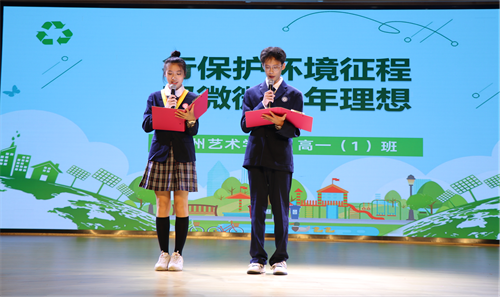 本次晨会由夏娉婷和叶晗政同学主持,他们将带领我们践行“保护环境,人人有责”。