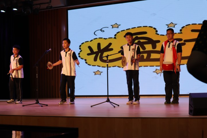 第二个节目是《三句半》,这是由七(4)班的黄震,朱梓墨,林承创以及金奕朋同学为我们带来的作品。在他们的表演过程中,观众席上时不时发出爆笑声。在开怀大笑的同时,大家也学到了许多与食物有关的知识。