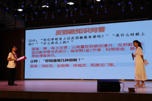 最后,我们开展了有关反邪教的教育活动。由政教处的邵雪花老师向同学们提出有关的问题,大家都回答得轻轻松松,彰显了我校平时对这一方面的教育十分到位。