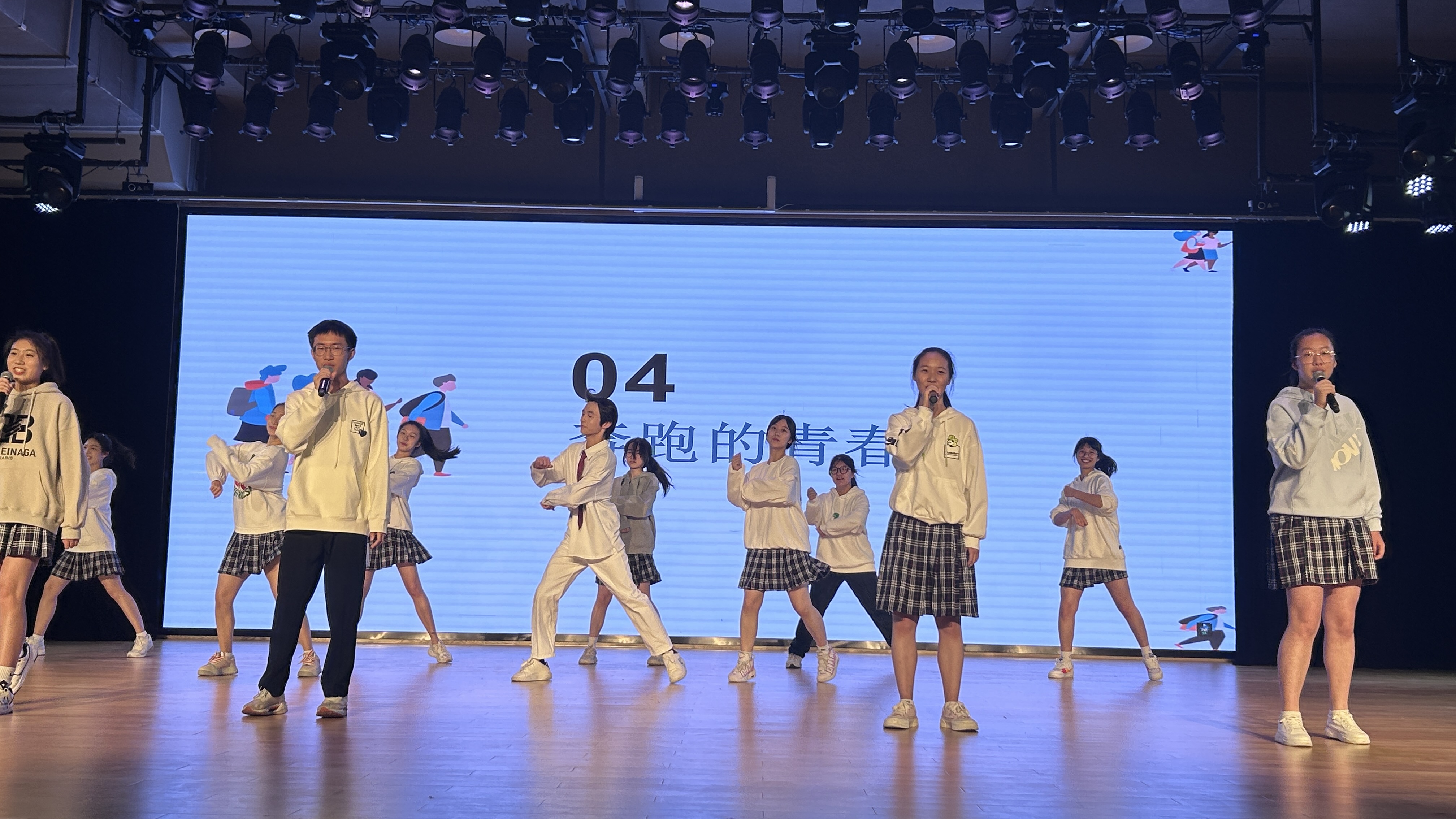 音乐在跳动,青春在飞扬。一首《hype boy》将节目推向高潮。舞台上的同学们笑容如花在绽放,那是最美的青春模样。让我们体会到了对奋斗充满热情,对困难无所畏惧,才能激扬起青春的彭扬力量。在歌曲《奔跑的青春》中,歌者们用歌曲唱响了对运动的热情。