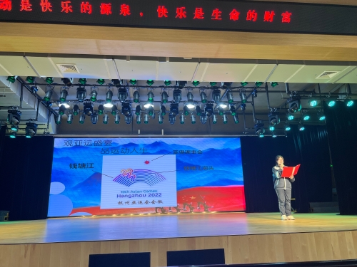 在《观亚运盛宴,品运动人生》的演讲中,陈子涵同学再一次呈现了令人难忘的亚运会,运动会上的运动健儿们展现了热血青春,用热情和汗水诠释了我们“生当如此盛世”就该“应当大鹏”。