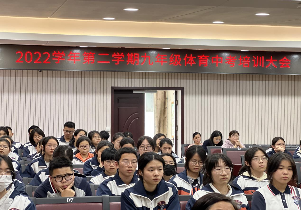 体育中考的脚步越来越近了,体育中考怎么考?如何做好准备工作?为了有序组织同学们参加2023年体育中考,我校特举行2023年体育中考培训大会。2023年4月11日下午,我校初三段考生齐聚北校区多功能厅,王涛老师给大家做了一次详尽的体育中考指南与规则培训。
