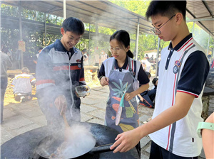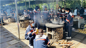 上午,同学们依据分成的小组,利用灶台烹饪美味菜肴。我们自己动手生火,小组分工又合作,人人动手烧菜。这对于常呆在教室里的我们来说,虽是挑战,但对于八年级的我们,比起上次,动作娴熟多了,菜品也丰富了许多。在老师的帮助下,每一组都烧出了令人垂涎三尺的美味佳肴,各组都独具特色。这个过程中,同学们互帮互助,共同品味其中乐趣,欢声笑语不断。我们不仅锻炼了自己的生活技能,还增长了团队合作的能力。