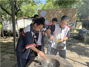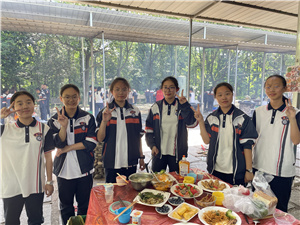 到达实践基地后我们来到了集合大厅,在庄严肃穆的国歌声中,我们开启了一天的精彩纷呈。首先的活动是家政,同学们利用自己所带的食材开始大显身手。虽然烧菜过程中,大家都遇到了不少困难,有的火生不起来,也有的油锅起火,但在老师的帮助和同学们自己的配合下,一个个问题都迎刃而解,并且从中学到了团队协作。最后也邀请老师们一起共享了我们的劳动成果。每个人的内心都充斥着成就感。