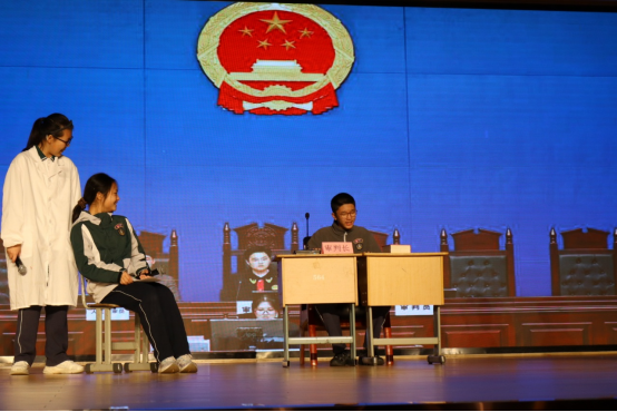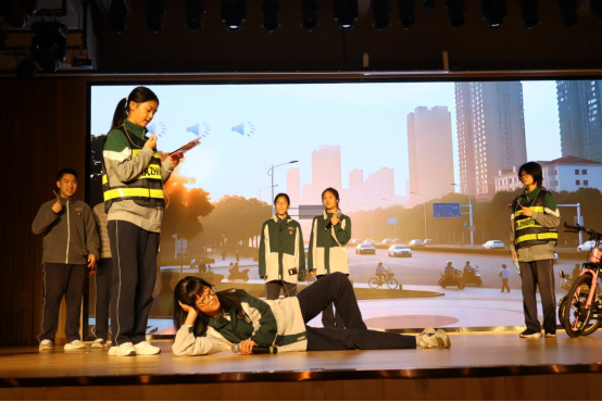 其次,在法治小品中,八1班同学演绎道路纠纷调处场景,生动彰显法律定纷息争的重要作用;董梦琦同学以《爱我国防 吾辈担当》为题演讲,将爱国情怀与法治意识深度交融,传递少年责任与担当;《知法守法 从我做起》教育视频通过案例剖析、法理解读,深化同学们对法治内涵的认知。
