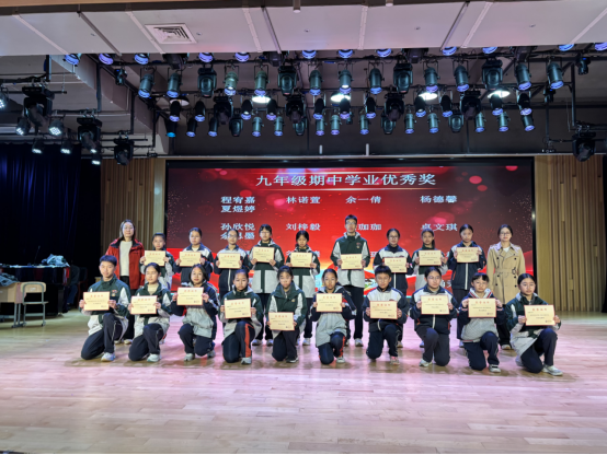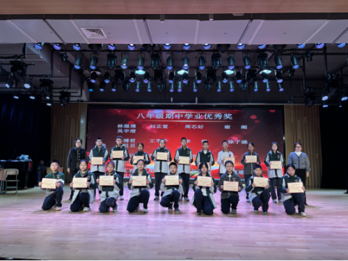首先,初中部举行了期中表彰仪式,表彰了在此次期中考中表现优异的同学。