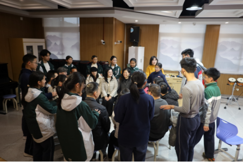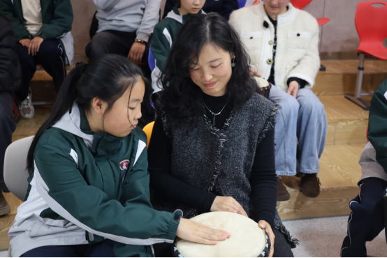 最后,伴随着温暖的背景音乐,谭老师送上祝福:“愿我们带着今天的声音和默契,回到家里,也能常常‘听见’彼此。音乐不用复杂,陪伴不用刻意。”