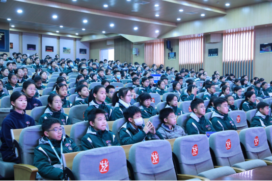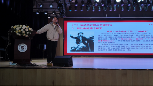 接着,初中历史与社会老师夏朝阳给全体师生作了题为《铭记一二·九,共筑爱国魂》的讲座。1935年12月9日,民族危亡之际,北平学子在中国共产党领导下,高举抗日救国旗帜,冲破军警阻挠游行示威,高呼 “停止内战,一致对外”,用热血点燃全民抗日的火种。这一运动公开揭露了日本侵略阴谋,推动了抗日民族统一战线形成,成为中国青年运动史上的丰碑。