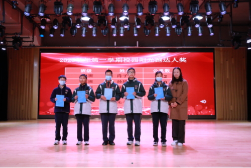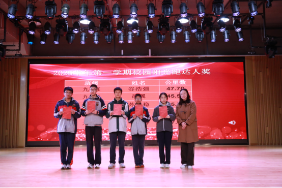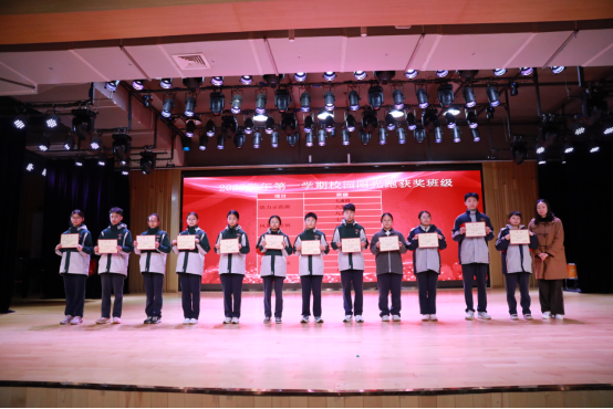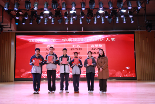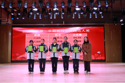 2026年1月19日上午,温州艺术学校初中部举行了2025学年第一学期校园阳光跑颁奖仪式。德育副校长杨洲老师给获奖班级及个人颁奖。