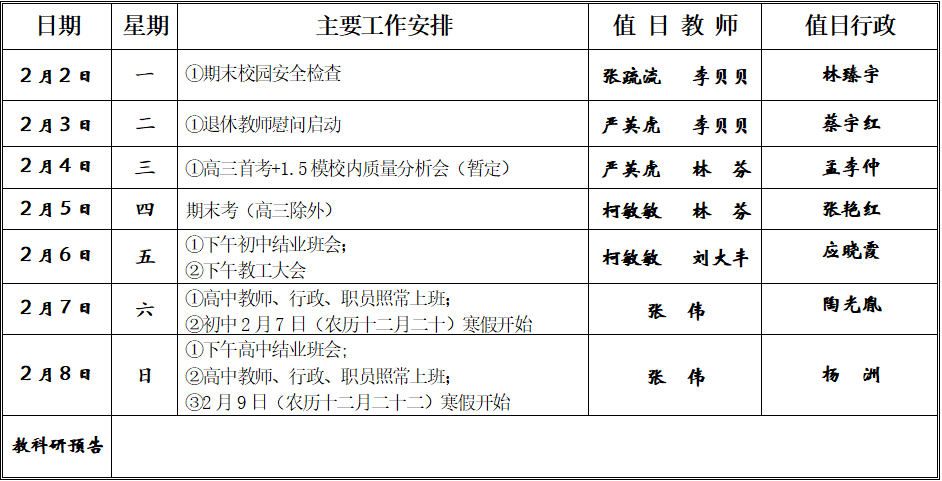 第二十三周行事历(2025学年第一学期)