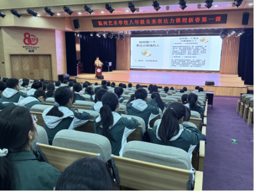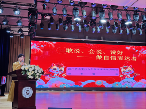 2026 年 3 月 6 日,温州艺术学校八年级 “未来表达力” 新春第一课顺利开讲,课程以 “敢说、会说、说好 —— 做自信表达者” 为核心,为新学期表达力训练拉开序幕。本次课程对 2025 学年第二学期的表达力课程进行全方位优化,从练习地点、主题、形式到评价方式均做出调整,让训练更具系统性和实效性。