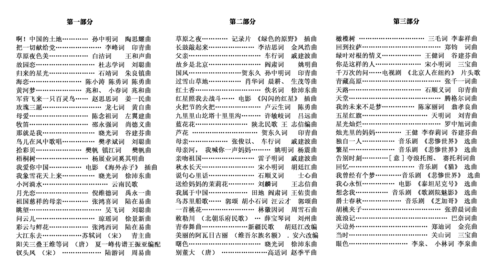 1.自选歌曲和规定歌曲(附曲目表)各一首,两首歌曲总时长不超过6分钟。演唱曲目须为独唱作品,背谱演唱,清唱形式,规定曲目可按声部移调演唱。